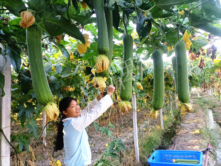 ▲ 看,“優(yōu)比1號”絲瓜的坐果狀況