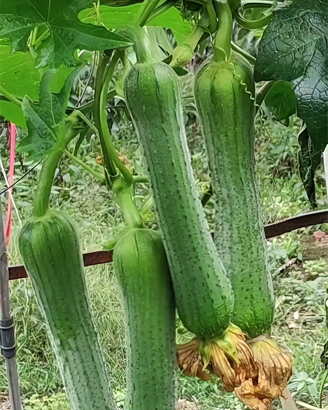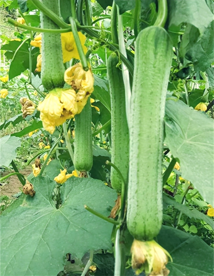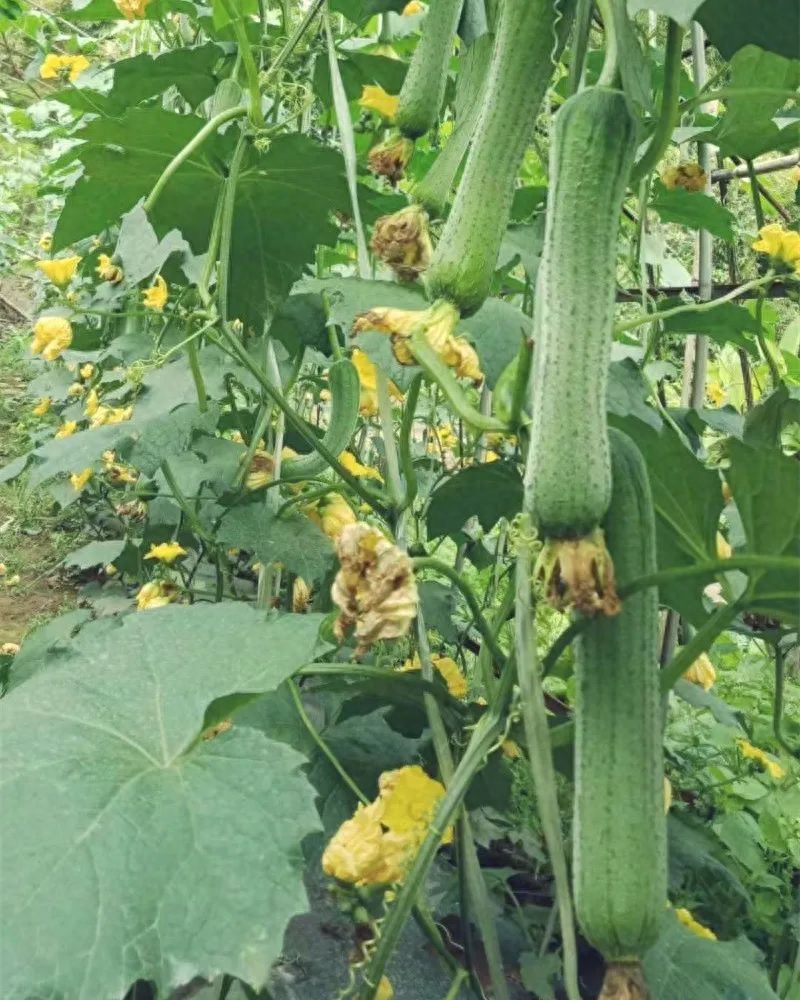 我是采用早春露地栽培,因?yàn)樵颇显绱宏幱晏於?,昆蟲活動少,我按《良種與良法》書中的說明,在雌花開放當(dāng)天,使用“氯吡脲”噴施瓜胎,以提高絲瓜坐瓜率。在盛果期,每7天左右追肥水1次,以保持肥水充足。就這樣,“優(yōu)比1號”絲瓜真是特別的好: