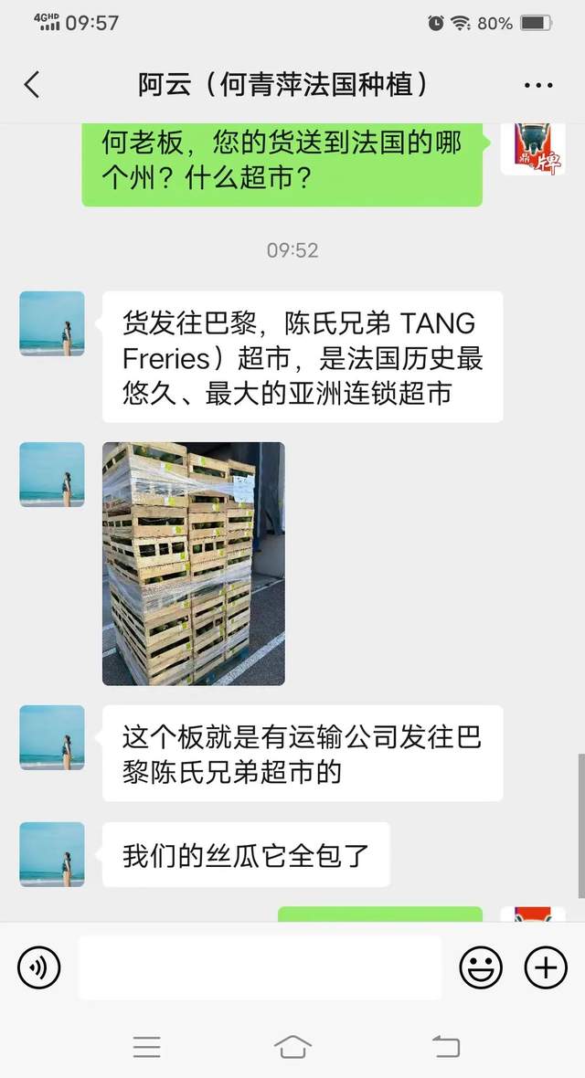 二是,我的“優(yōu)比1號(hào)”絲瓜種在法國(guó),銷在法國(guó)。這邊農(nóng)產(chǎn)品價(jià)格普遍比國(guó)內(nèi)高。“優(yōu)比1號(hào)”品質(zhì)好,深受亞裔們喜歡,這幾年我的絲瓜都是直接被法國(guó)巴黎陳氏兄弟超市(法國(guó)歷史最悠久、最大的亞洲連鎖超市)收購(gòu)的。據(jù)超市采購(gòu)經(jīng)理說,與其它絲瓜相比,“優(yōu)比1號(hào)”品質(zhì)更好,更受歡迎;在超市的零售價(jià)折合人民幣每公斤45元。