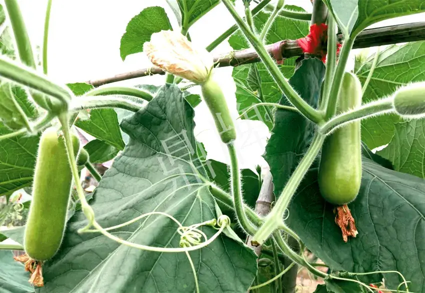 ▲ 2022年7月底,氣溫高達(dá)42度,其它瓠瓜的葉片出現(xiàn)了萎蔫。“露地傳奇”生長(zhǎng)正常、坐果正常。