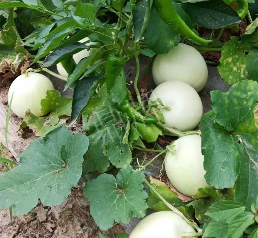 ▲“爽歪歪”與辣椒間栽,8成熟的瓜