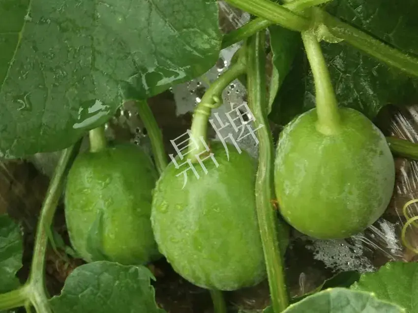 施用方法:當(dāng)一批瓜有乒乓球大小時(shí),結(jié)合澆水追肥,每畝施復(fù)合肥25公斤、硫酸鉀10公斤,這次的肥水供應(yīng)很重要,與瓜的產(chǎn)量和品質(zhì)成正比,特別說明的是,只要植株平均有4~5個(gè)乒乓球大小的瓜,此時(shí)加強(qiáng)肥水供應(yīng)是不會(huì)出現(xiàn)“瘋長”的,因?yàn)楣系呐虼笙牧舜罅筐B(yǎng)分;雨天要注意排水,不能出現(xiàn)漬水情況。在果實(shí)膨大期,噴磷酸二氫鉀+殺菌劑+蕓苔素內(nèi)酯,7天左右噴1次,連噴3~5次,能加速果實(shí)膨大,提高產(chǎn)量30%以上,并且,植株的抗病能力增強(qiáng),瓜的顏色好,瓜的含糖量明顯提高。殺菌劑可以是多菌靈或百菌清等,按藥劑說明濃度使用。