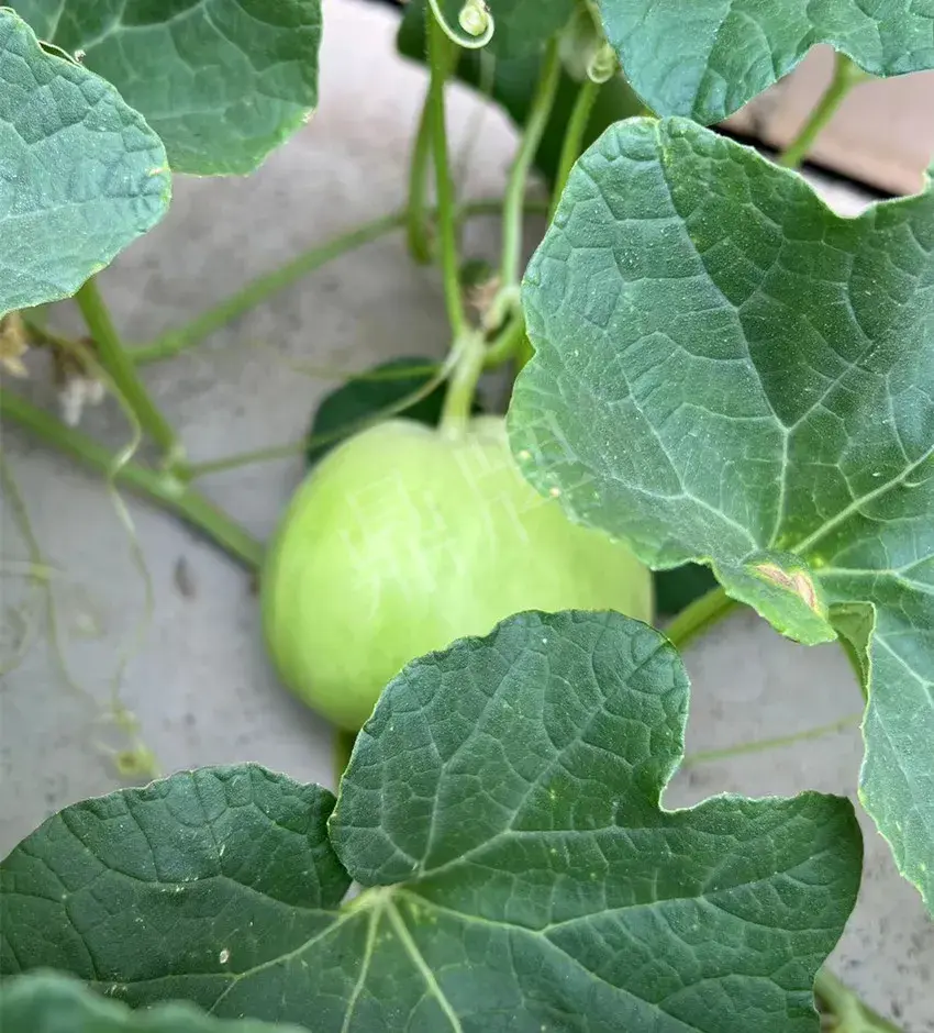 ▲ 這是“秋甜1號(hào)”前幾日結(jié)的瓜(8月23日),也長(zhǎng)大了