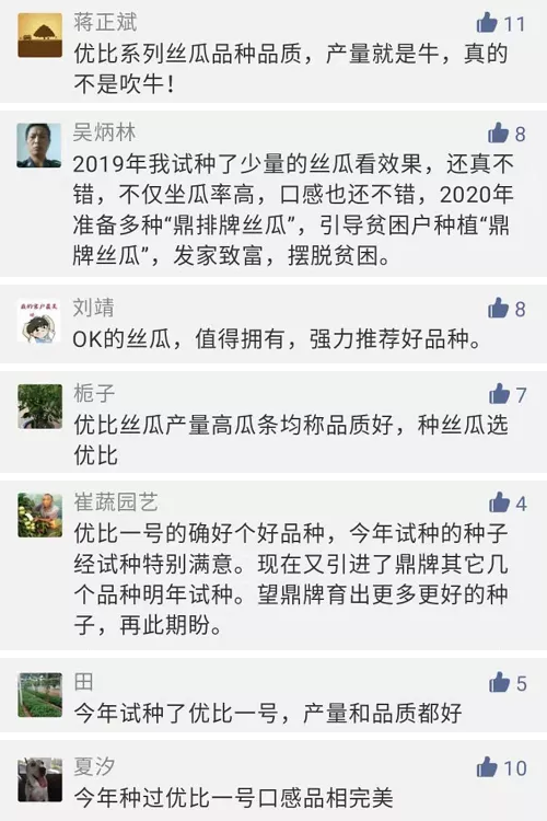 為了讓大家能夠更加深入的了解鼎牌,我們就以“優(yōu)比1號”絲瓜為例??纯创蠹曳N了之后都是怎么說的?