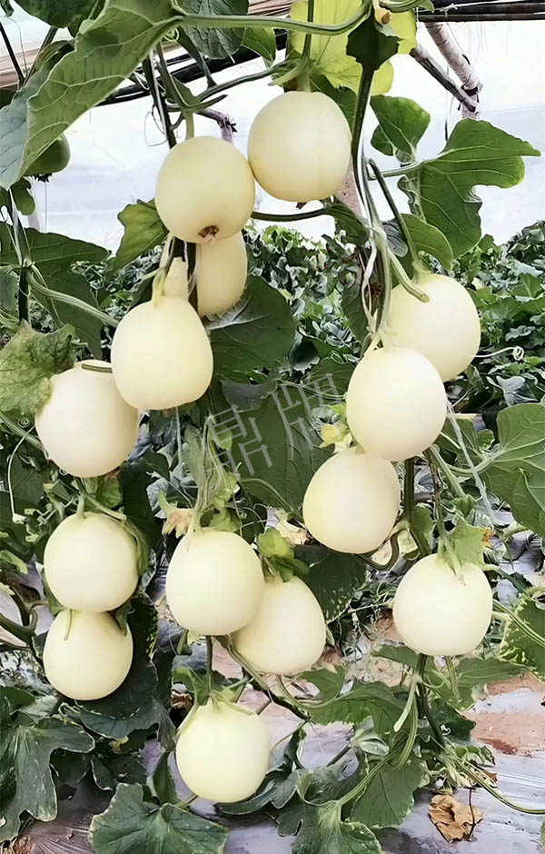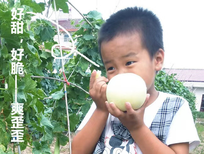 果實(shí)成熟后,甜度高達(dá)19度;果皮、果肉潤白,有一種天然質(zhì)感,看到就讓人喜歡;果肉厚達(dá)3厘米,這是薄皮甜瓜中難以見到的品種,連皮吃時(shí)能聽到“咔嚓”之聲,脆爽無比;坐果早而多,單果重650克左右;多雨天氣不易裂瓜,棚室、露地都能獲得豐產(chǎn)。